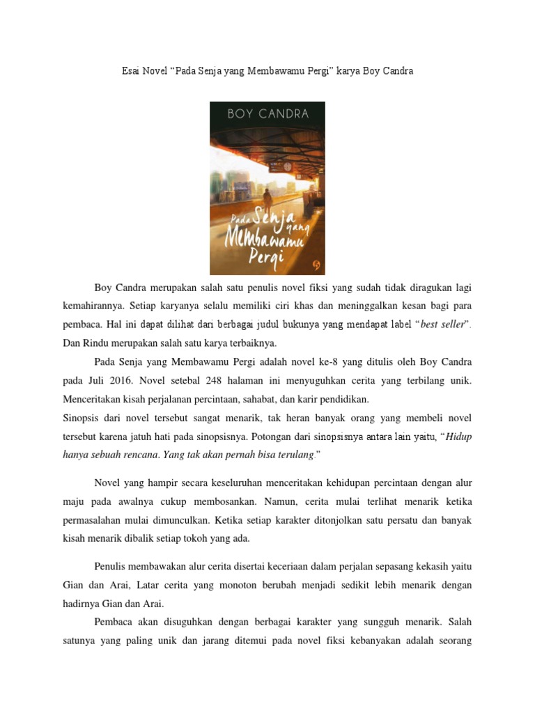 Esai Novel Pada Senja Yang Membawamu Pergi Pdf